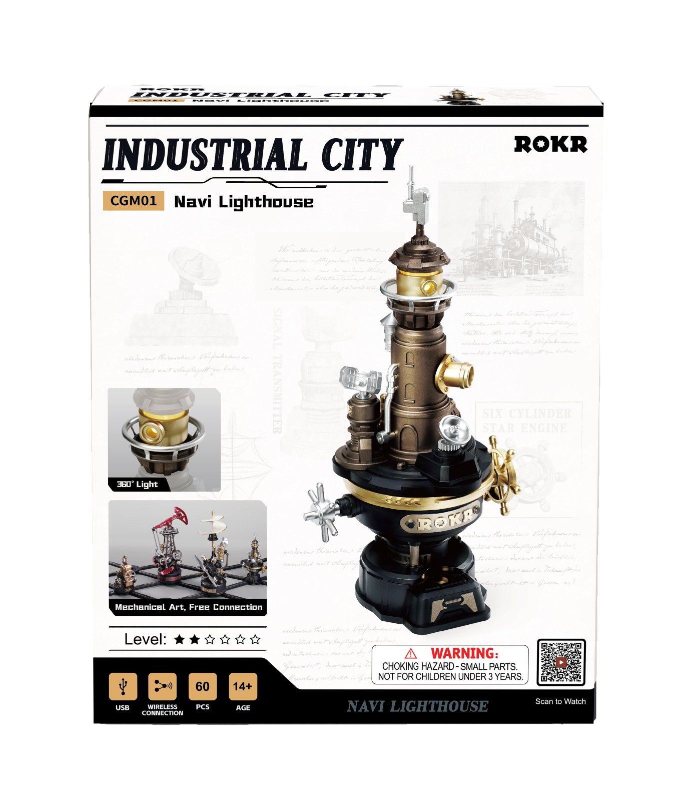 Am Rande einer Klippe in Strandnähe steht ein mechanischer Wächter, dessen Augen und Ohren sich ständig drehen und Seeleute auf ihrer nächtlichen Reise leiten. Das ist das 3D-Puzzle „ROKR Navi Lighthouse“, ein Leuchtfeuer und Symbol für den technologischen Fortschritt in der Schifffahrtsindustrie. Diese Miniatur eines vollautomatischen Leuchtturms verfügt über ein Basismodul, in dem sich der speziell angefertigte Untersetzungsmotor und das mehrschichtige Planetengetriebe befinden. Außerdem verfügt er über einen strukturellen Rücken in der Mitte, in dem sich das rotierende Radar befindet, und eine Lichtkammer an der Spitze, die einen spiralförmigen Schimmer erzeugt. Es ist eine lebendige Darstellung rotierender Elemente, die Ihre Industrial City-Sammlung noch spannender machen. Aus Metall und Kunststoff. 60 Teile, aufgebaut 5,8 x 8 x 16,1 cm, 14+, VE 1 Stk.