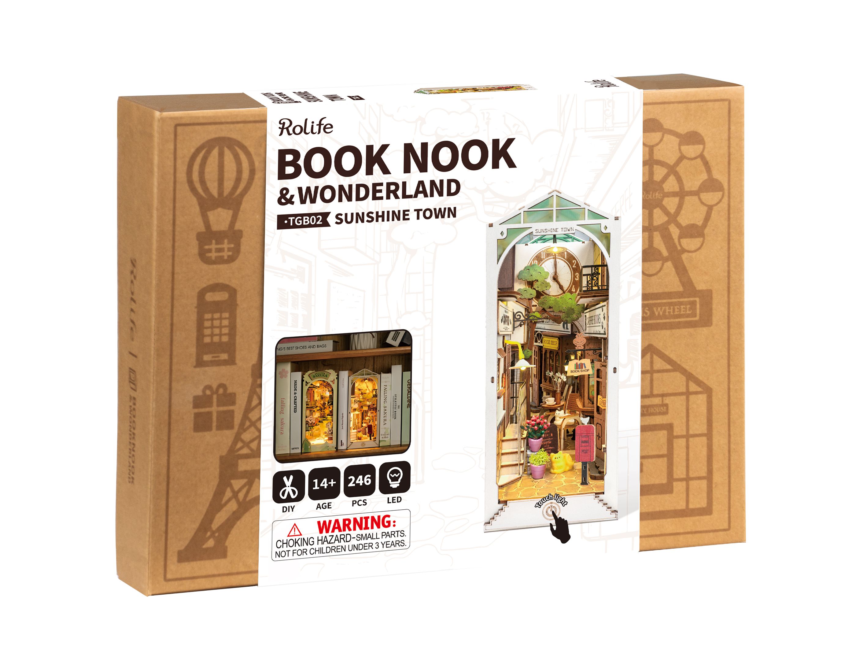 Eine Bücherecke mit unzähligem Zubehör, als Bücherstütze geeignet, LED-Beleuchtung, riesiger Bastelspass, Alter 14+, aufgebaut 18,5 x 10 x 24,5 cm, 246 Holzteile, VE 1 Stk.