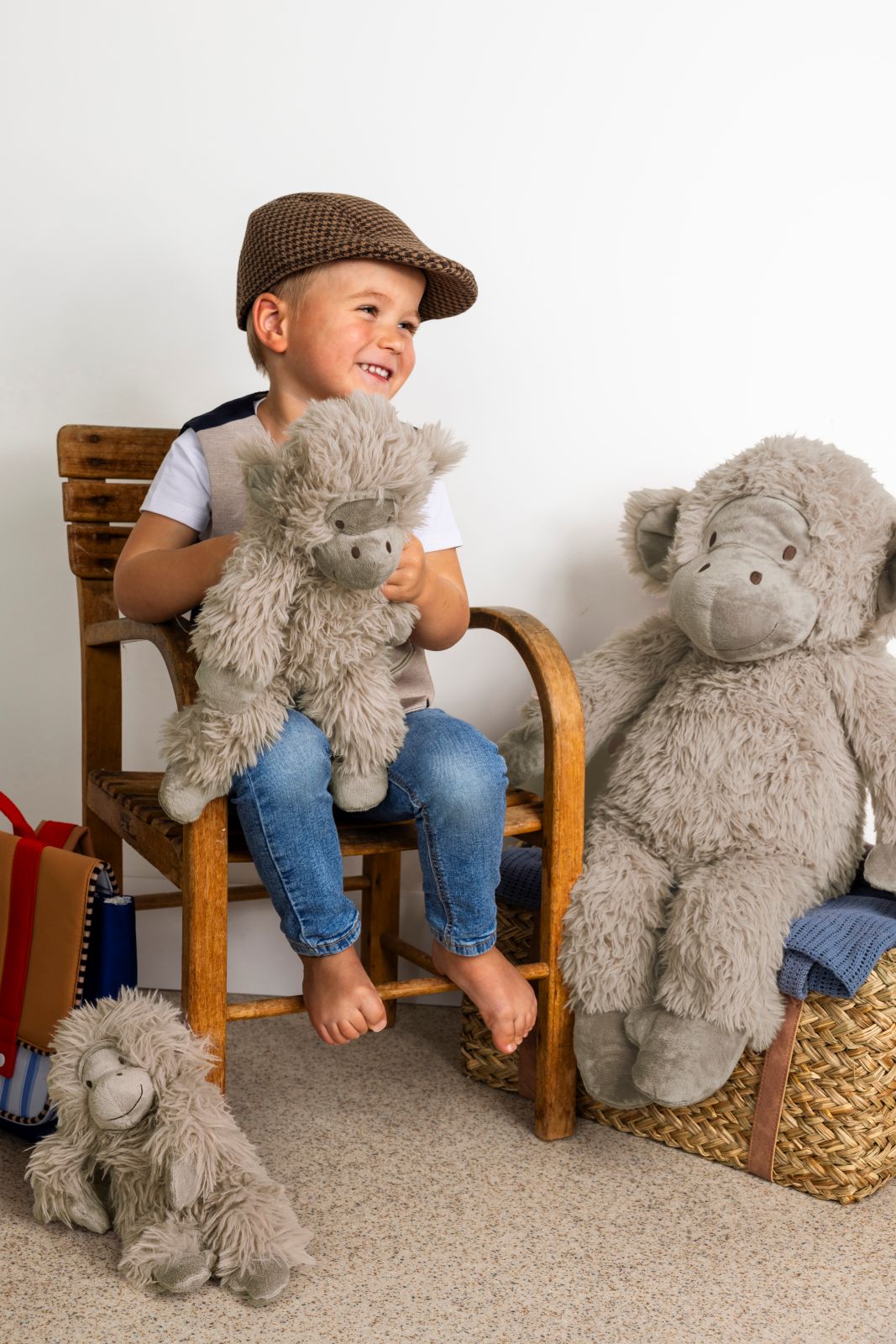 Hier ist Miso, der größte Affe. Beeindruckend, sanftmütig und voller Charakter – dieser abenteuerlustige Affe umarmt dich wie kein anderer und bringt sofort Freude in dein Zuhause. Er ist bereit, mit dir gemeinsam neue Abenteuer zu erleben. Polyester, Füllung aus recyceltem Polyester. Maschinenwaschbar bei 30°. 70 cm, 0+, VE 1 Stk.