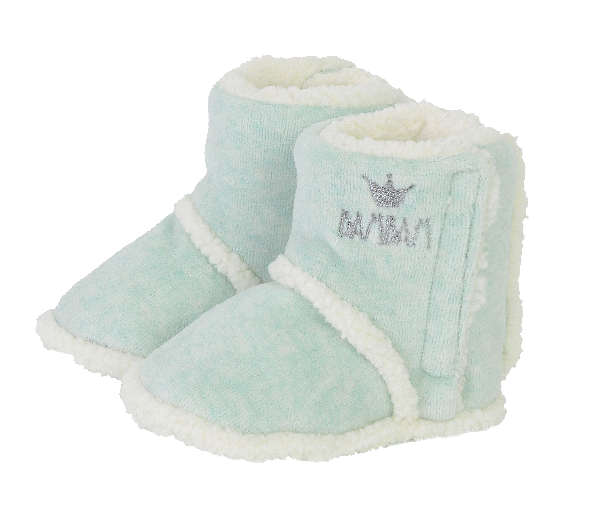 Warme Finken aus Wolle in Lagoon melee, gefüttert mit weichem Kunstfell, Klettverschluss. VE: 2