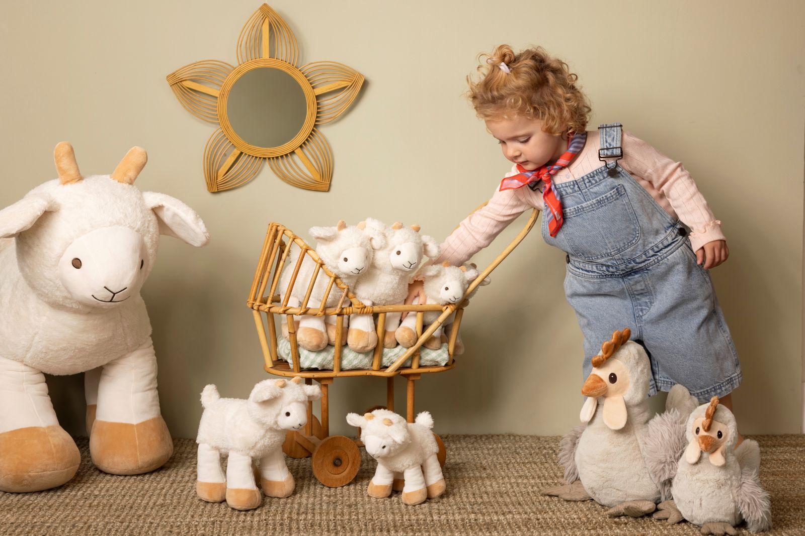 Dieses Churro-Schaf ist sanftmütig, lieb und sehr anhänglich. Seine ruhige und freundliche Art vermittelt Kindern ein Gefühl der Geborgenheit, während er gleichzeitig neugierig und verspielt genug ist, um gemeinsam Abenteuer zu erleben und Kuscheleinheiten zu etwas ganz Besonderem zu machen. Polyester, Füllung aus recyceltem Polyester. Maschinenwaschbar bei 30°. 24 cm, 0+, VE 2 Stk.