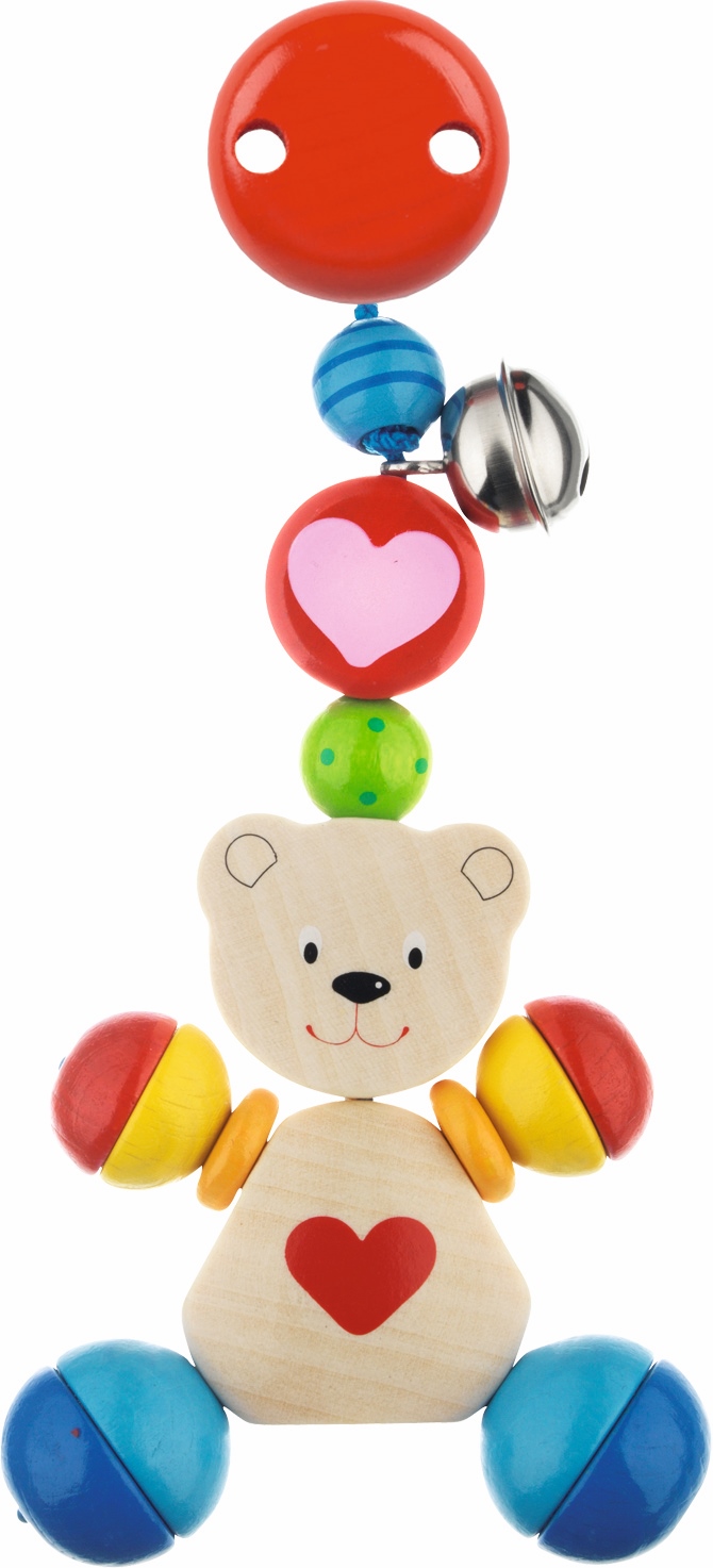 Die liebevoll gestaltete Clipfigur aus Holz mit niedlichem Bärenkopf kann an Babybett, Kinderwagen oder Babyschale befestigt werden. Höhe 14 cm, VE 2 Stk.
