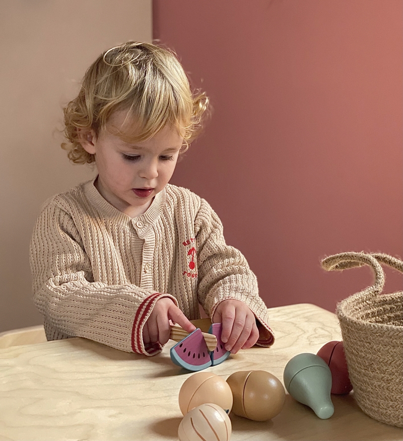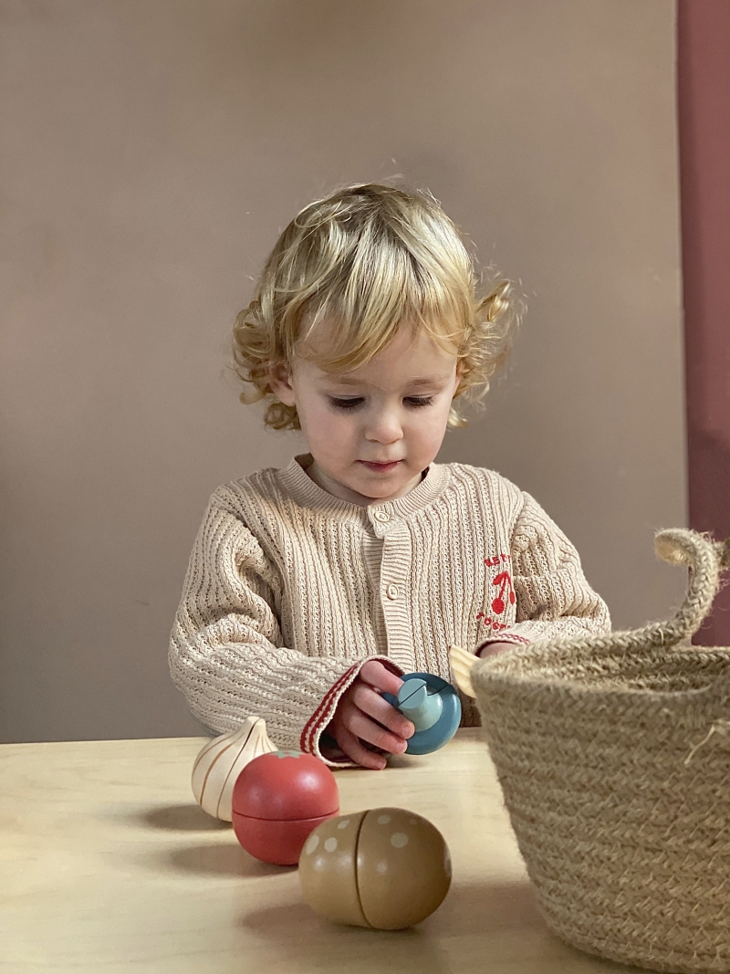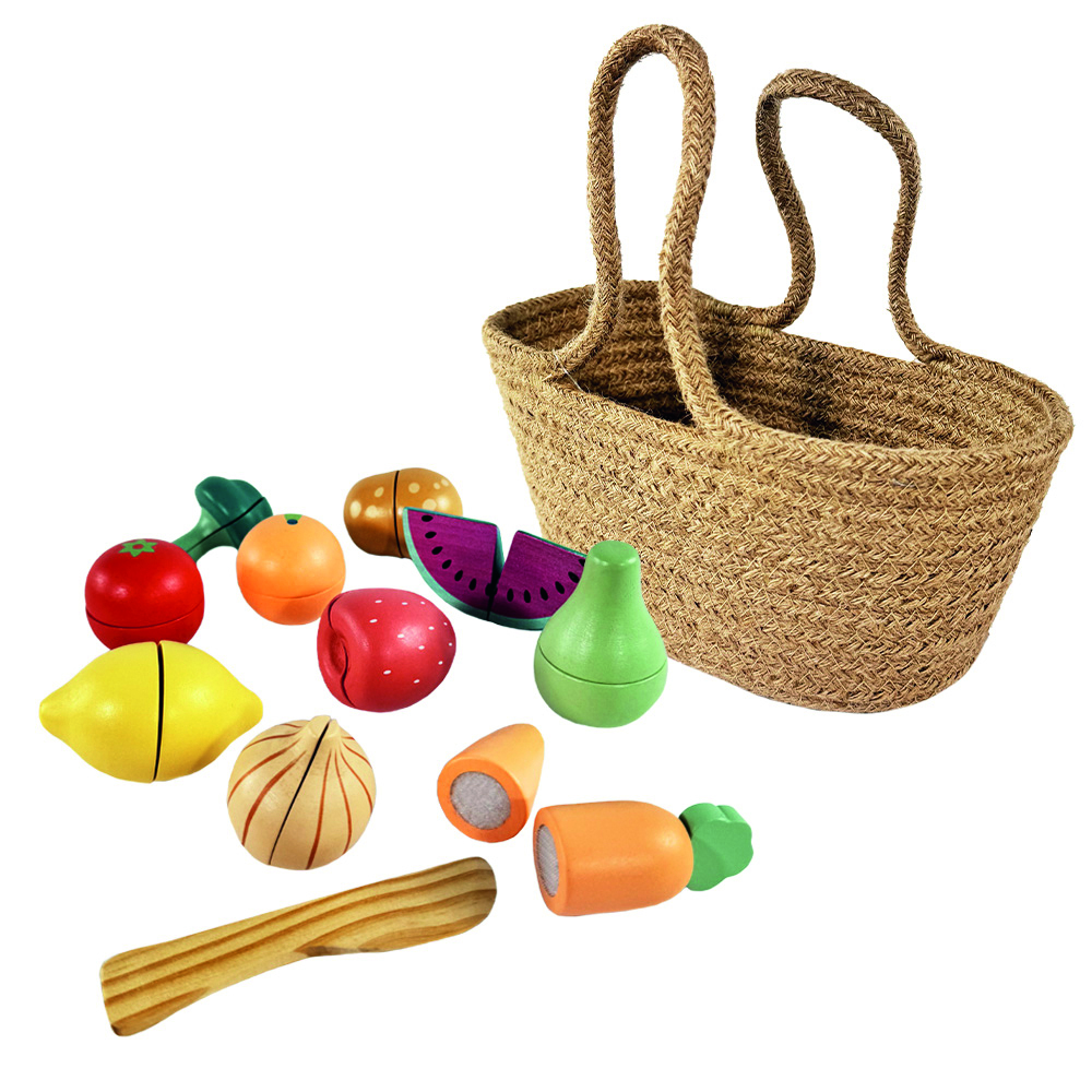 Ein Messer und 10 Früchte und Gemüse zum Schneiden...in einem schönen Einkaufskorb aus Naturkordel. Alles, was Sie brauchen, um ein schönes Abendessen vorzubereiten! Naturkordel, Holz, 26 x 11 x 11 cm, 2+, VE 1 Stk.