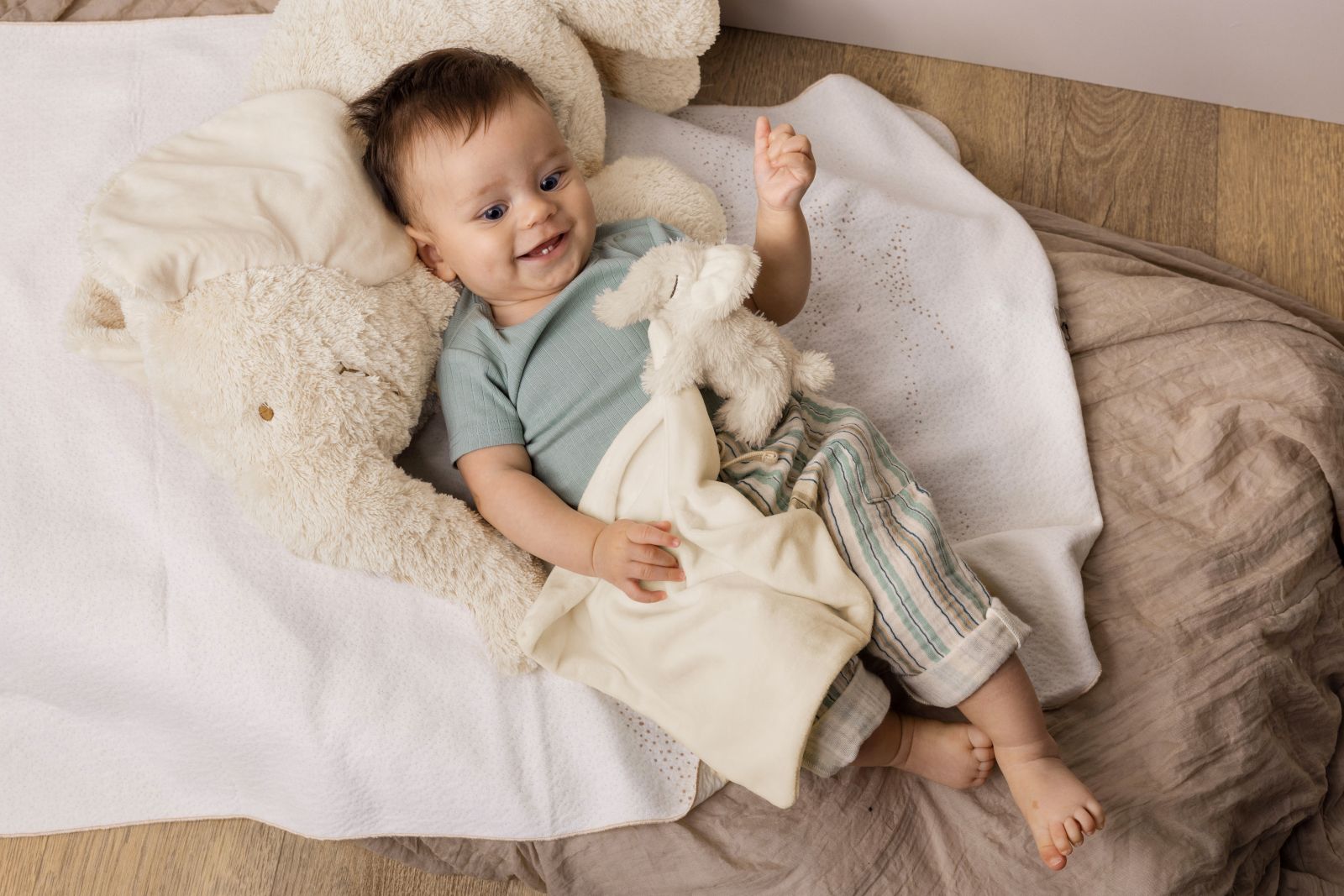 Ezzy, der kleinste Liegeelefant, ist weich, flauschig und ein fröhlicher Kuschelpartner. Seine neugierige Art macht jede Spielzeit zu etwas Besonderem, denn er leistet Kindern mit Kuscheleinheiten, Geschichten und kleinen Abenteuern im ganzen Zimmer Gesellschaft. Polyester, Füllung aus recyceltem Polyester. Maschinenwaschbar bei 30°. 20 cm, 0+, VE 2 Stk