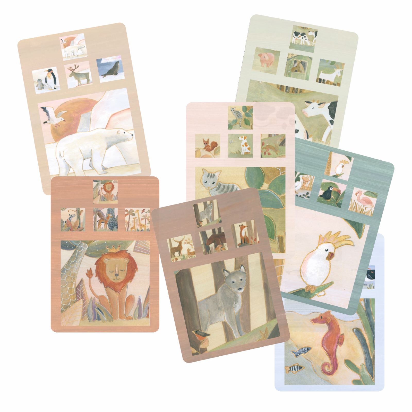 Lerne spielerisch alles über die Tiere bei diesem Tierquartettspiel. Speziell für die Kleinsten entwickelt, nur mit Bildern. 28 Karten aus FSC Karton. 3+, VE 2 Stk.