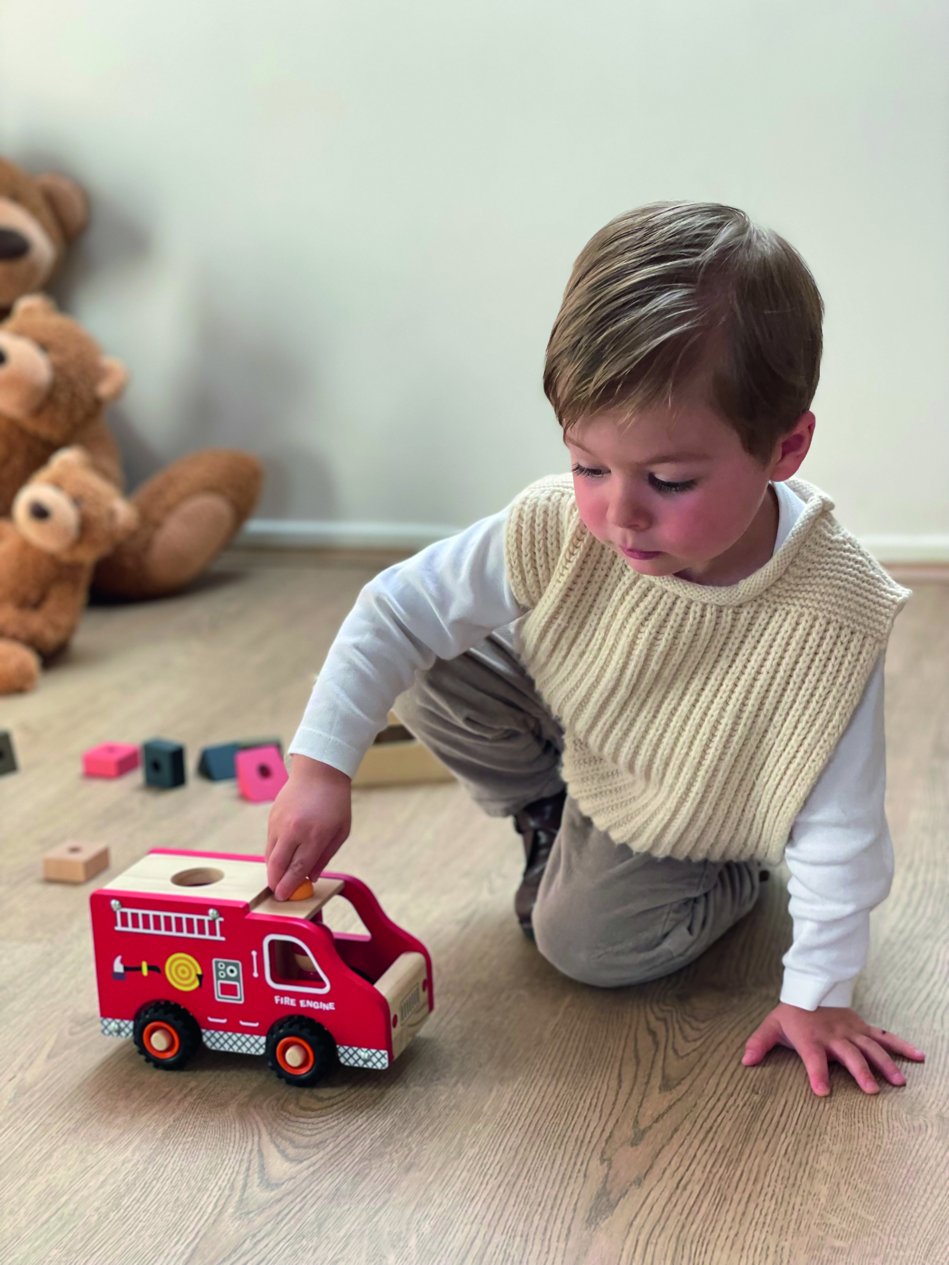 Ein solides Feuerwehrauto aus FSC zertifiziertem Holz mit Gummirädern, 20 x 10 x 12 cm, 1+, VE 2 Stk.