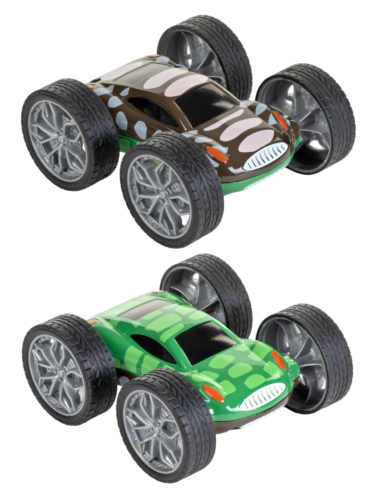 Diese Druckguss-Aktionsautos haben auf jeder Seite ein Tiermotiv. Wenn sie angeschoben werden und gegen eine Wand fahren, klettern sie hoch und kippen auf die andere Seite und verwandeln sich in ein neues Tier. 8,8 cm, 3+, VE 2 Stk.
