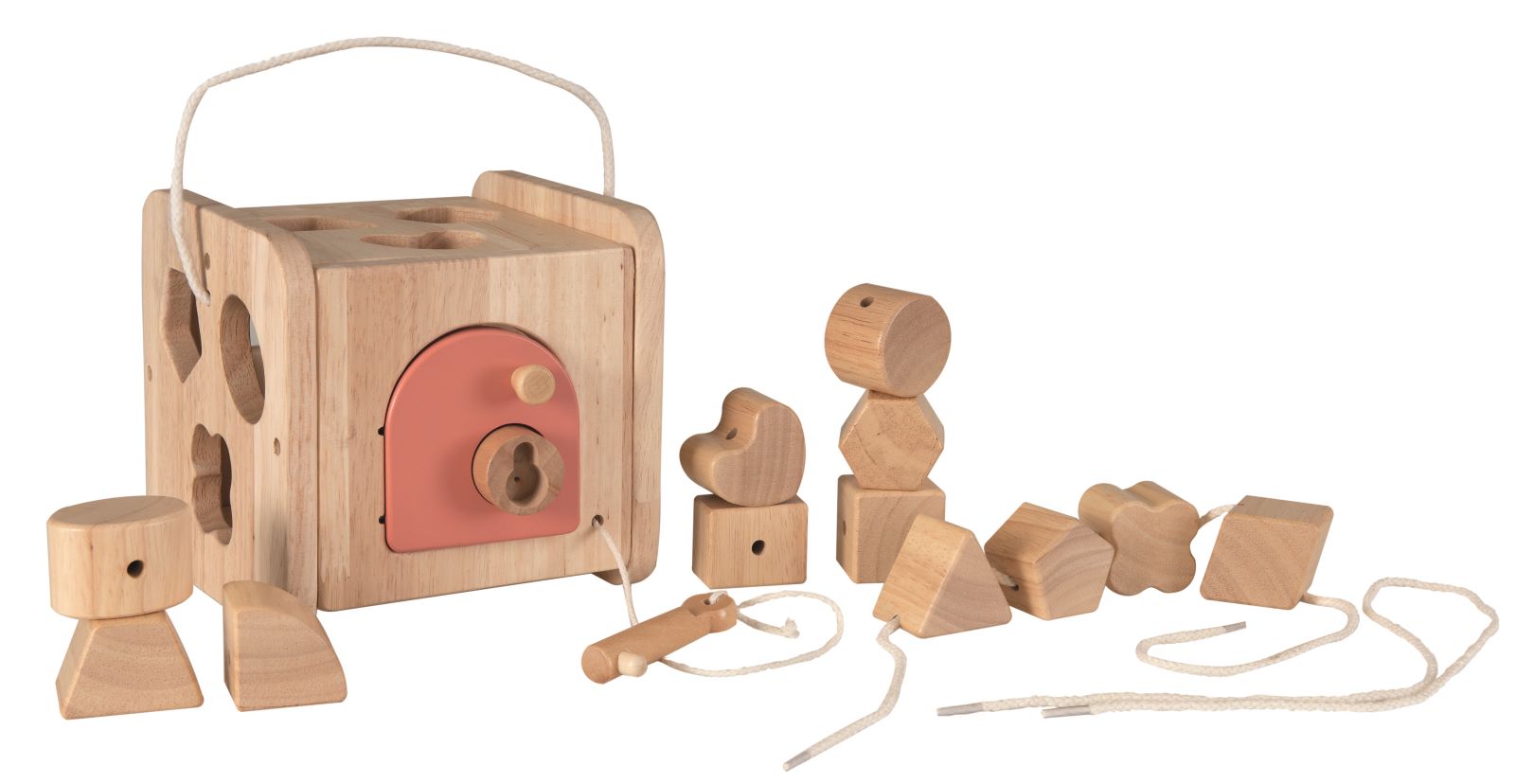 Finde die richtigen Fenster für die Blöcke und öffne dann mit dem Schlüssel die Tür, um sie zurückzuholen. FSC zertifiziertes Holz.