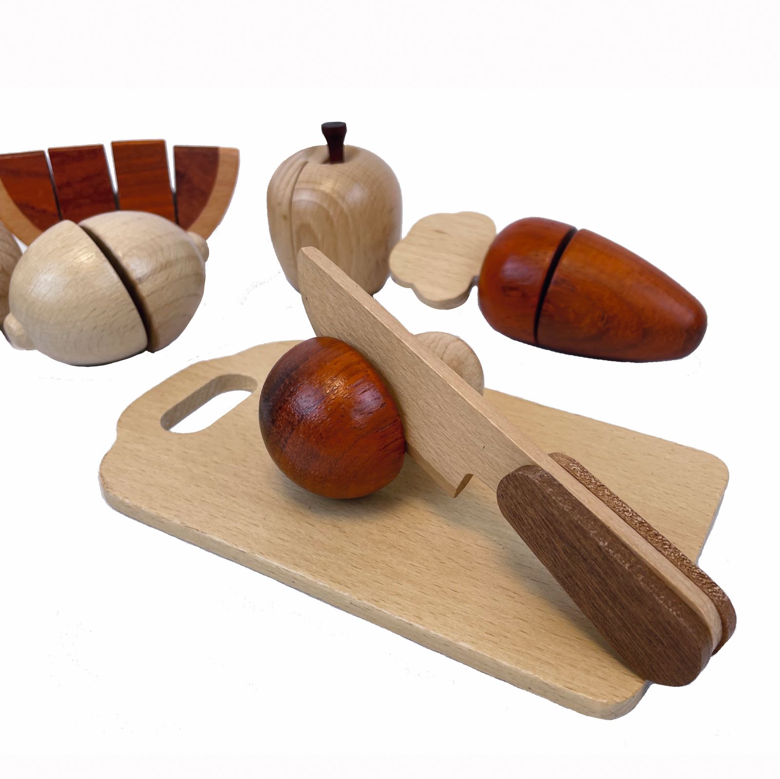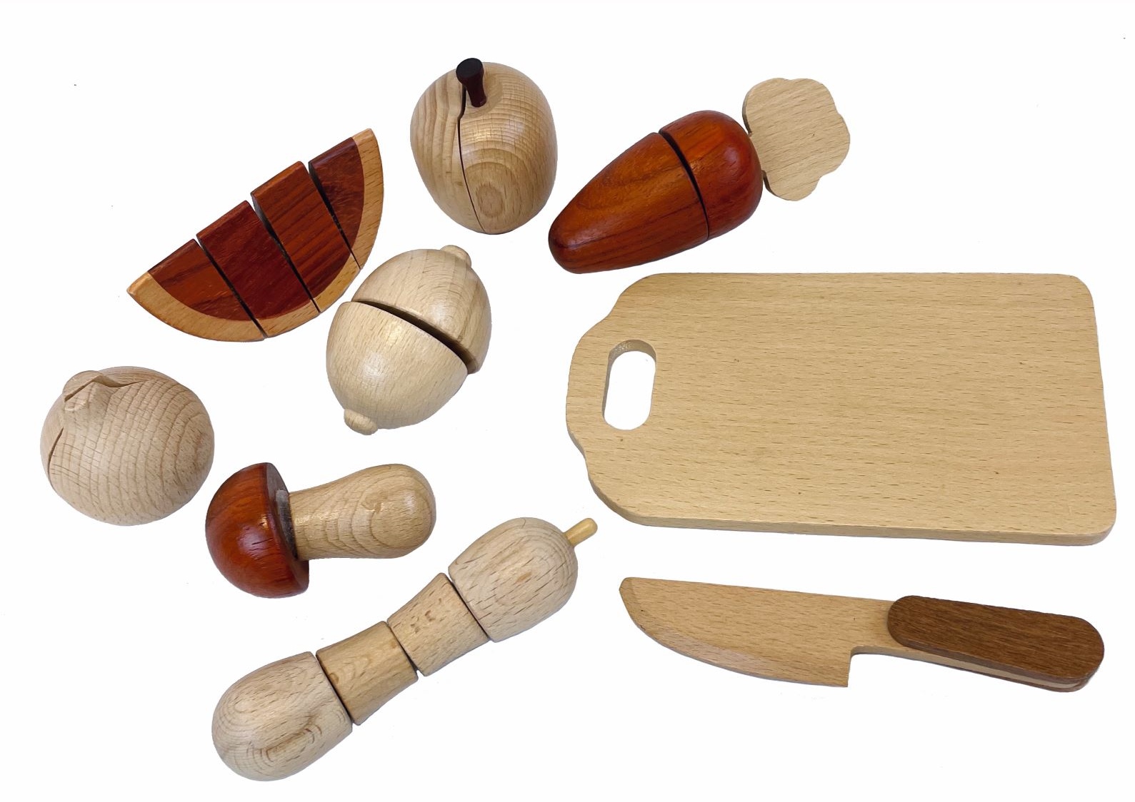 In diesem hübschen Pappköfferchen befindet sich ein Gemüseset zum Schneiden (Klettverschluss) mit allem, was der kleine Koch braucht: 7 Arten von vorgeschnittenem Gemüse, ein Schneidebrett und ein Messer. Alles aus Buchenholz; ökologisch und von bester Qualität. 25 X 17,5 X 8.5 cm, 3+, VE 1 Stk.