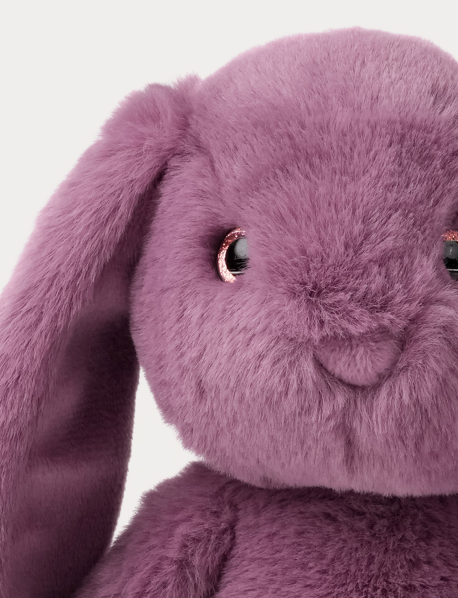 Diese Hasen sind aus extraweichem, dichtem Plüsch gefertigt und haben glänzende, ausdrucksstarke Augen, die ihnen ein warmes und lebensechtes Aussehen verleihen. Ihre langen Ohren und gestickten Details werden durch die einzigartige Persönlichkeit jedes einzelnen Hasen ergänzt. Sie werden in einer dekorativen, bouquetartigen Verpackung geliefert und eignen sich daher perfekt als Geschenk. 25 cm, 0+, VE 2 Stk.