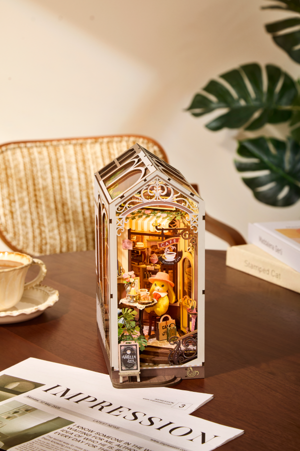 Umgeben Sie sich in diesem Café mit weitem Blick mit dem frischen Aroma von Kaffee, der Schönheit von Blumen und der Wärme des Sonnenlichts. Genießen Sie einen frisch gebrühten Kaffee, der von Meister-Baristas zubereitet wird, die auch eine umfangreiche Auswahl an herzhaften und süßen Köstlichkeiten anbieten. Es gibt genug Platz, um ein oder zwei Freunde einzuladen, denn perfekte Momente wie diese sollten geteilt und geschätzt werden. Das Rolife Holiday Café Book Nook Kit bietet mit 171 komplizierten Teilen und einer Vier-Sterne-Bewertung genau das richtige Maß an Herausforderung. Sie werden begeistert sein von den Kreidetafeln mit der Speisekarte, der realistischen Espressomaschine, den Holzschränken, den dekorativen Pflanzen und den kleinen Leckereien in diesem Café im Innenhofstil. Die großen Fenster bieten einen seitlichen Blick, den die meisten Bücherecken nicht haben, sodass Sie dieses Set als perfekte Buchstütze verwenden oder auf Tischen, Kaminsimsen oder Schreibtischen ausstellen können. Machen Sie eine Pause und beruhigen Sie Ihre Seele mit dem malerischen Holiday Café, exklusiv von Rolife. Aufgebaut 12X22,2x26,2 cm, 171 Teile, mit LED-Licht, VE 1 Stk.