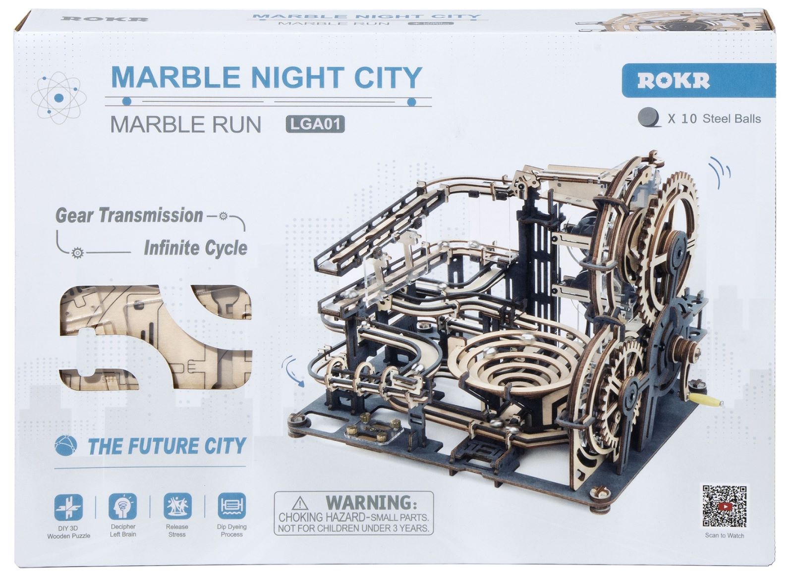 Eine noch grössere, noch ausgefallenere Kugelbahn! Da müssen in den Zusammenbau doch einige Stunden investiert werden, doch es lohnt sich, wie man dem Video entnehmen kann! Mit der Kurbel angetrieben, passiert so einiges...Aufgebaut 21,4 x 22,8 x 32, 5 cm, 294 Teile, 14+, VE 1 Stk.