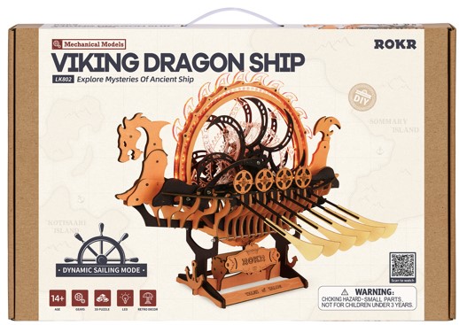 ROKR vereint in diesem neuesten Modell die Faszination der alten Wikinger, den Charme komplizierter Handwerkskunst und den Spaß am Bau Ihres eigenen 3D-Holzpuzzles. Das Wikinger-Drachenschiff wurde von den eleganten Langschiffen der nordischen Seefahrer inspiriert, die Drakkar genannt wurden, was wörtlich „Drache“ bedeutet. Sie waren ein Symbol des Stolzes, des Reichtums und eines Volkes, das für seine Fähigkeiten in der Kriegsführung und der Entdeckung gefürchtet war. Sie waren im 8. bis 11. Jahrhundert weit verbreitet, als sie Flüsse und offene Meere befuhren. 14+, aufgebaut 46,5 x 46 x 36,7 cm, 229 Teile, VE 1 Stk.