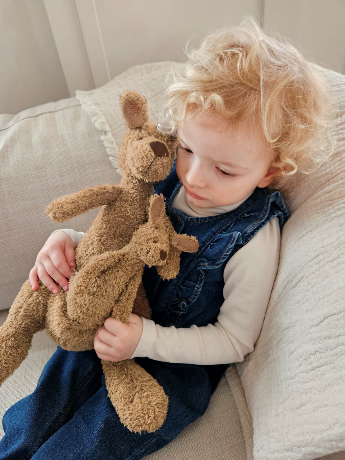 Nicht nur im australischen Outback, sondern auch in unserer Kollektion gibt es ein unglaublich süßes, lustiges Kuschelkänguruh mit einem entzückenden Baby in seinem Beutel. 24 cm, 0+, VE 2 Stk.