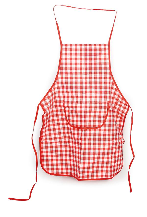 Kochschürze, -Handschuh und -Hut, rot/weiss kariert