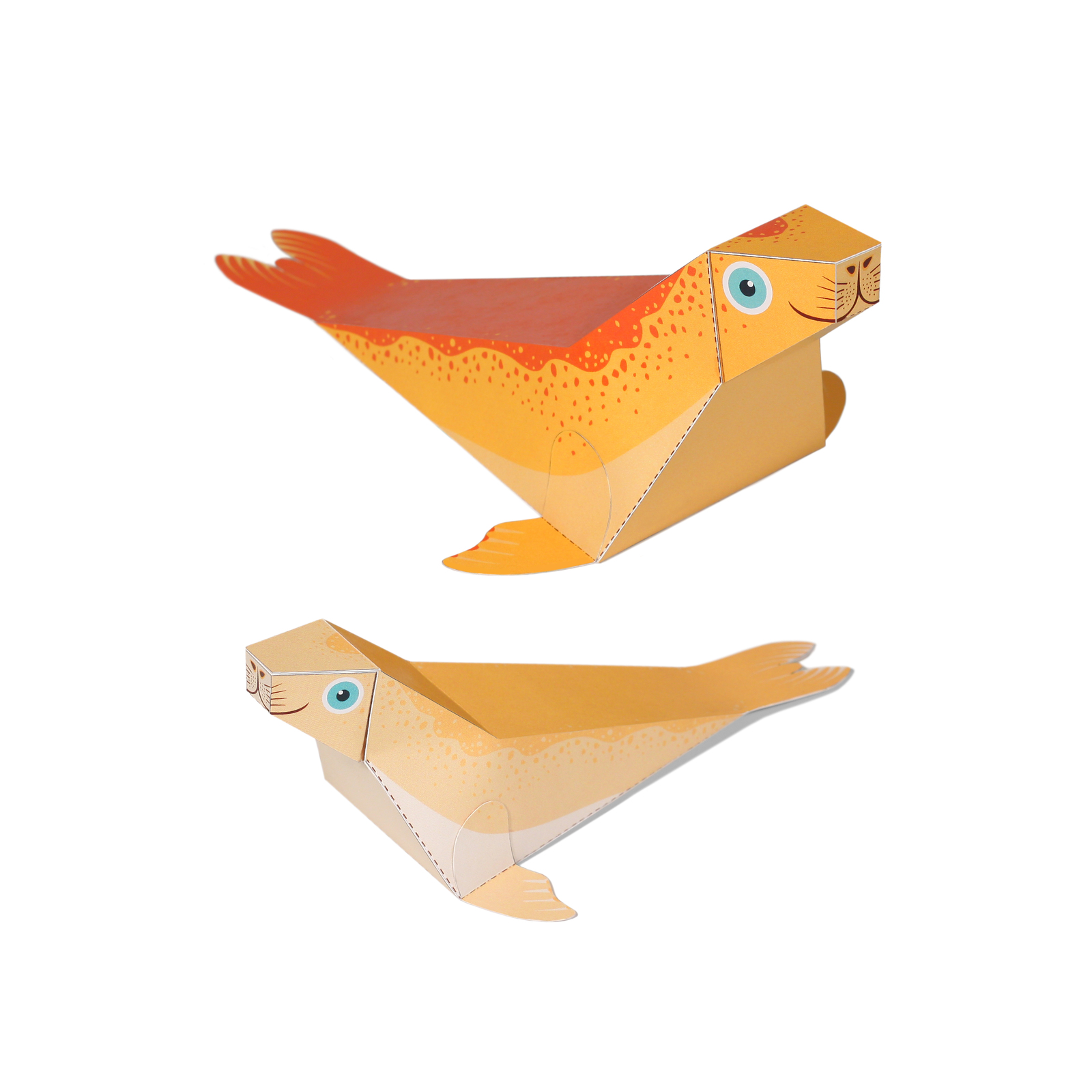 Mit den Maxi Robben Papierspielzeugen kannst du 2 Robben zusammenbauen - eine Erwachsene und ein Junior.