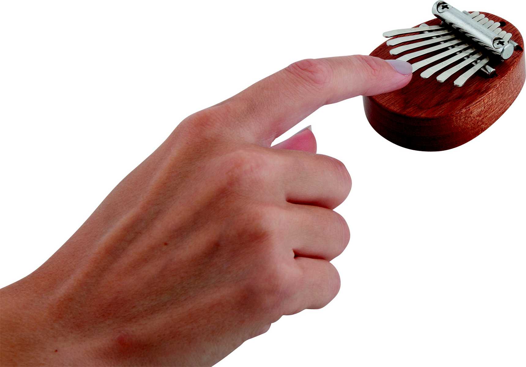 Die Kalimba wird mit beiden Händen gespielt, wobei man die Fingernägel für die Klangerzeugung und die Fingerkuppe zum Abdämmen verwendet. 8 Töne, Holz, Metall, L= 6,8 cm, Alter 5+, VE 2 Stk.