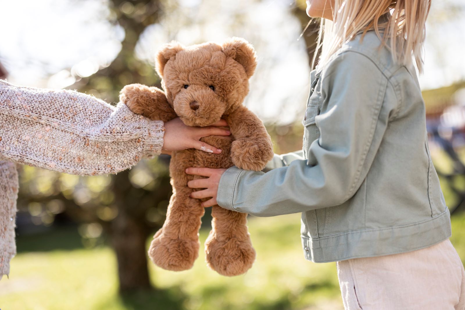 Dieser liebenswerte Teddybär hat Augen aus Glas und eine Nase aus Garn, was ihm einen charmanten und authentischen Charakter verleiht. 35 cm, 0+, VE 2 Stk.