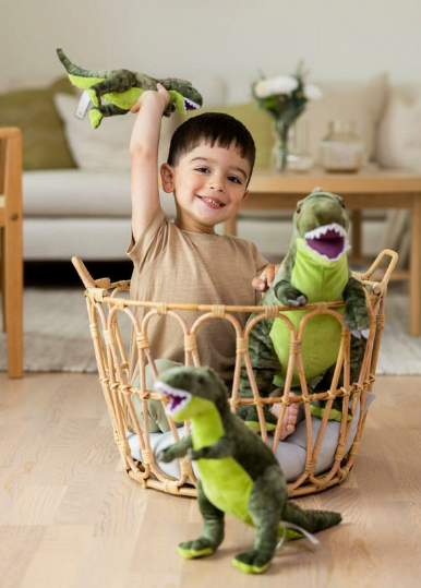 Ein hübscher Dinosaurier mit dunkelgrünem Fell und grünen Nähten auf dem Rücken. 0+, VE 2 Stk.