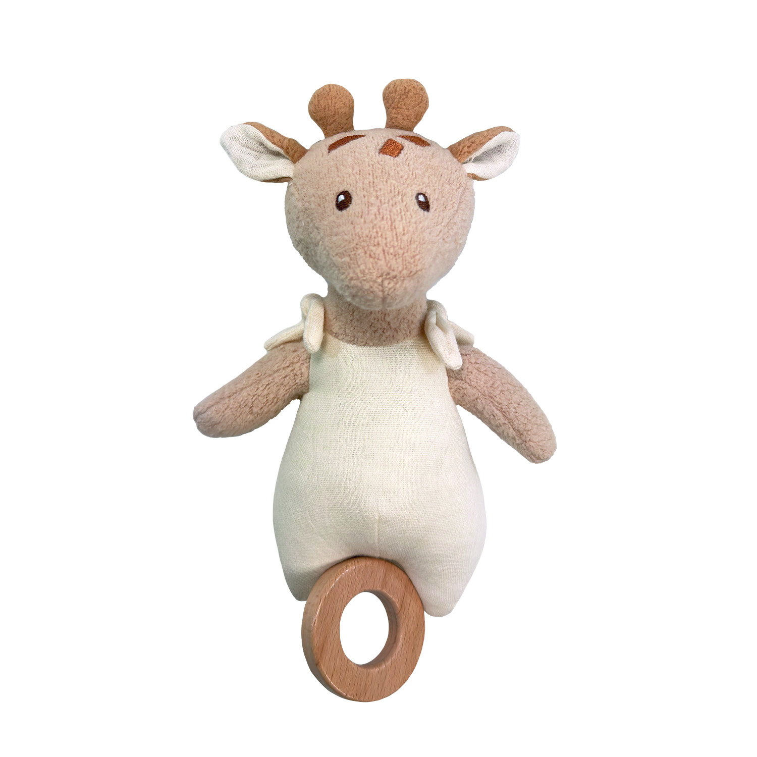 Léonie ist eine sehr weiche und ökologische Giraffe, die aus Biokoton und recyceltem Polyester besteht. Ziehen Sie an dem Holzring und Sie hören die schöne Melodie von Rock a bye baby. 22 cm, 0+, VE 2 Stk.