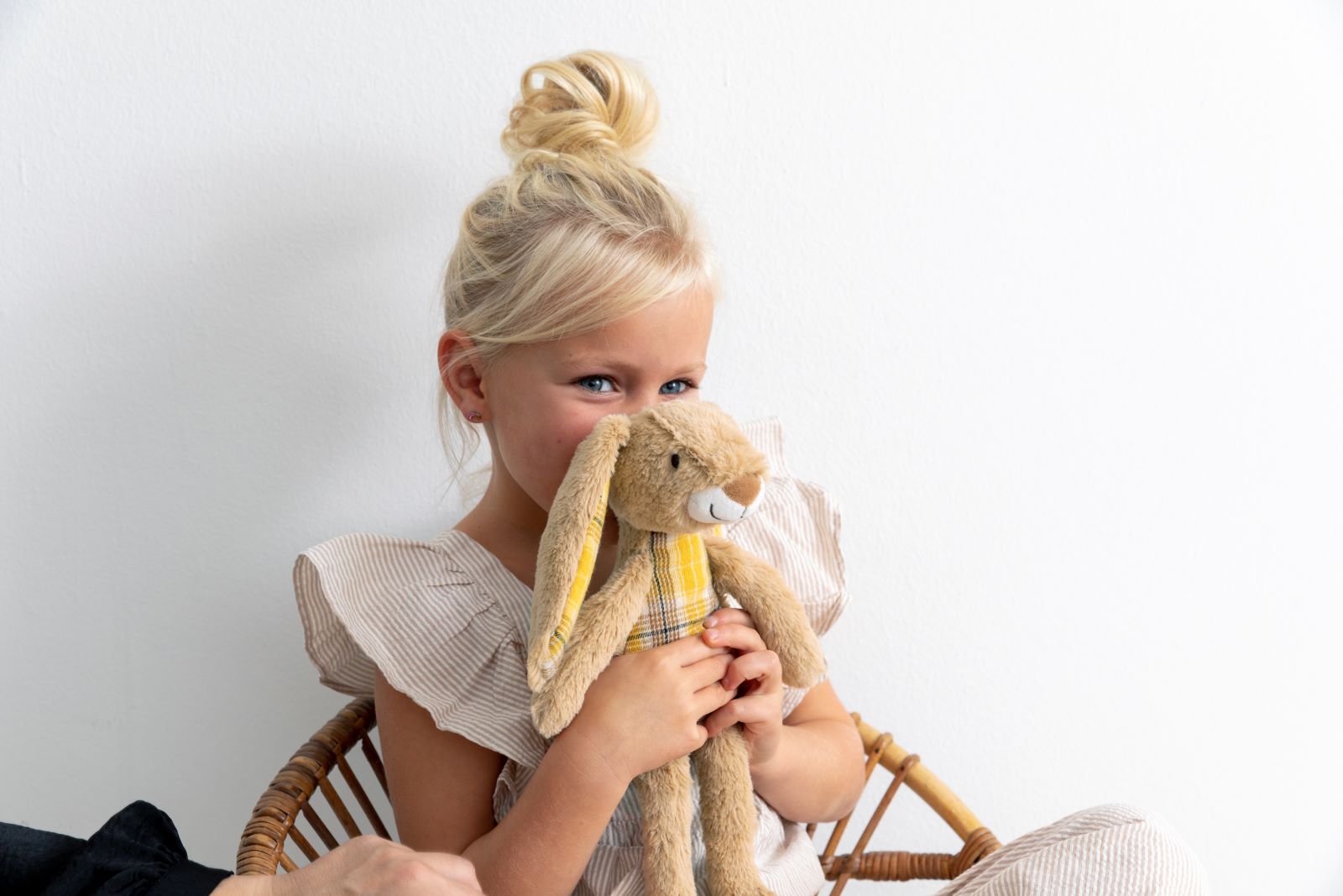 Hase Riley ist ein echter Modekönig mit seinem hippen Anzug aus gelbem Karostoff. Dieser knuddelige Champion ist nett und hip, modern und einzigartig. 0+, VE 2 Stk.