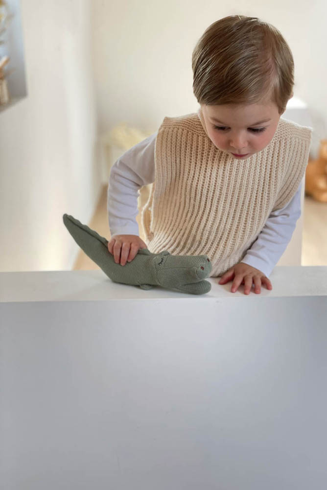 Ein hübsches, weiches Krokodil aus Baumwolle mit Polyesterfüllung, waschbar mit 30°, 30 x 7 x 9 cm, 0+, VE 2 Stk.