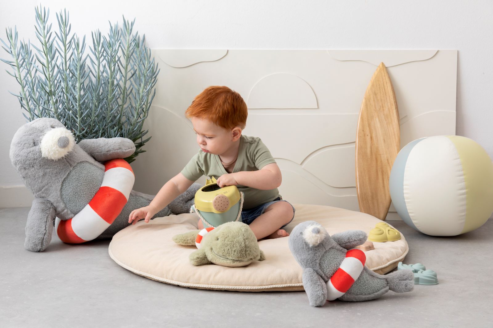 Die Robbe Senna schwimmt am liebsten im Meer oder spielt am Strand. Aber mit dieser niedlichen rot-weißen Rettungsboje um ihre Taille wird sie direkt in dein Zimmer springen, um mit dir zu kuscheln. 0+, VE 2 Stk.