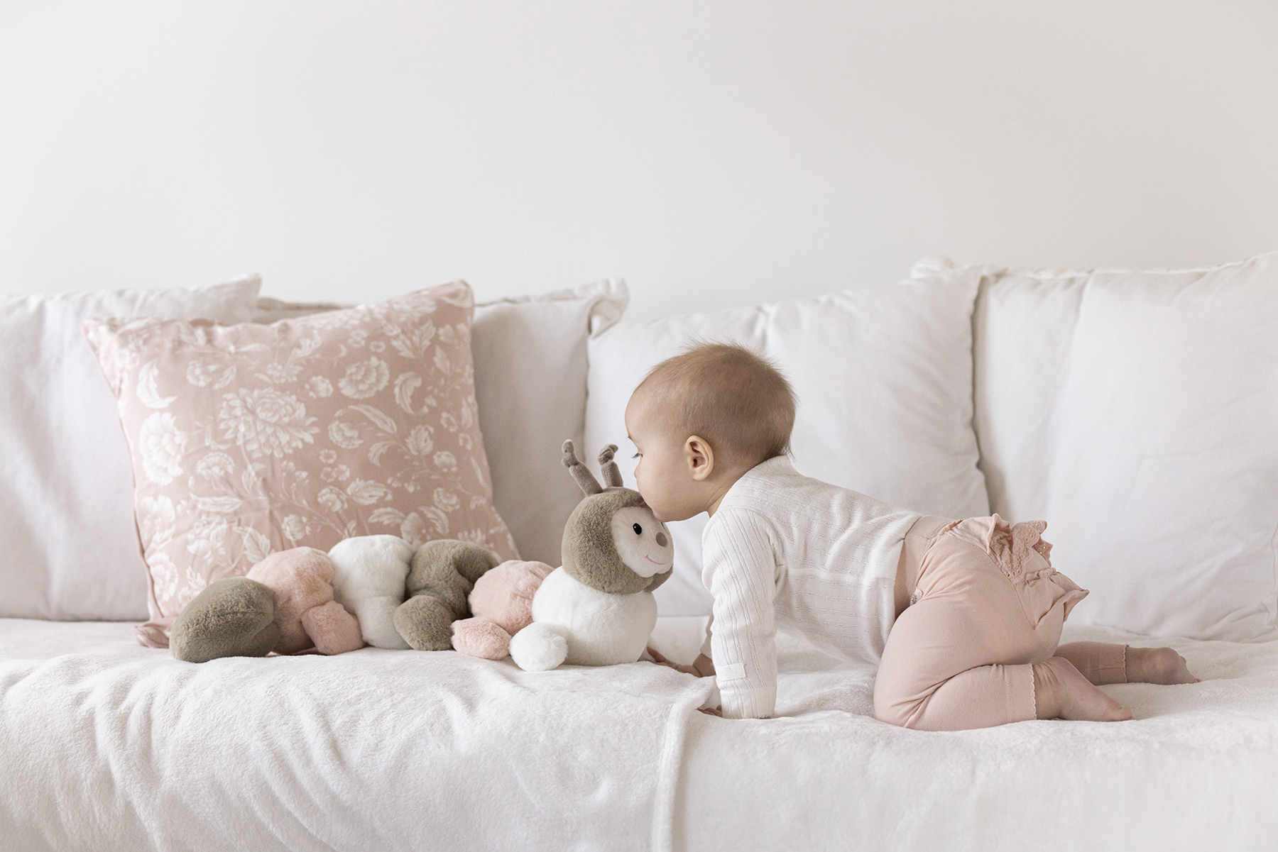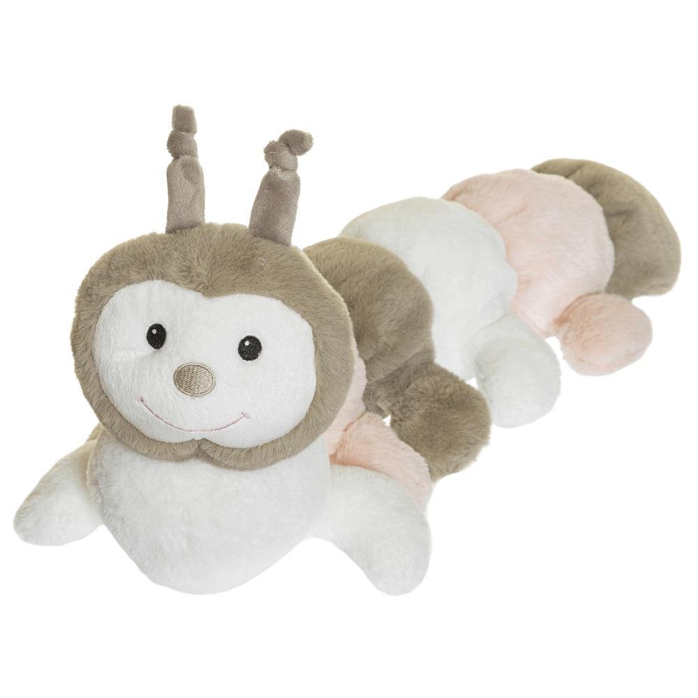 Ein weicher und hübscher Tausendfüssler in einem ruhigen Farbschema aus Hellgrau, Hellrosa und Weiß. Gemütlich zum Kuscheln, kann aber auch als 'Polster' verwendet werden, um Ihr Baby vor den harten Gitterstäben zu schützen. 0+, VE 2 Stk.