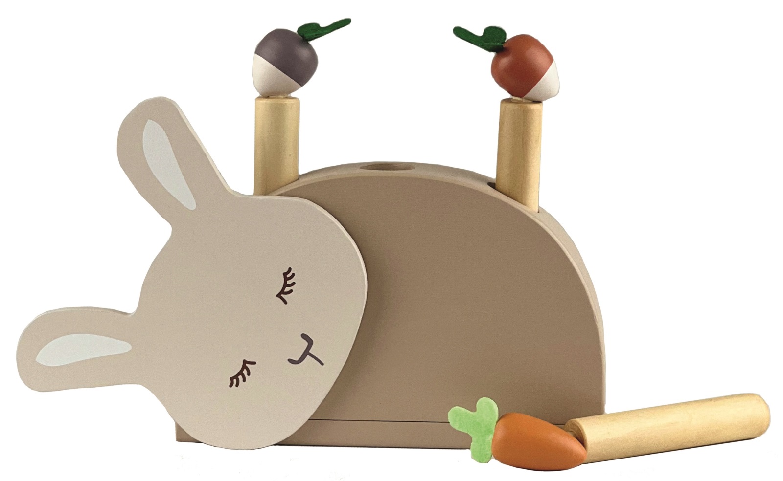 Der Hase macht ein Nickerchen. Drücke auf das Gemüse und versuche, es zu fangen. Dieses Pop-up-Spiel ist großartig, um die Motorik und die Reflexe auf spielerische Weise zu entwickeln. 19 x 14 x 4 cm, ab 10 Mt., VE 2 Stk.