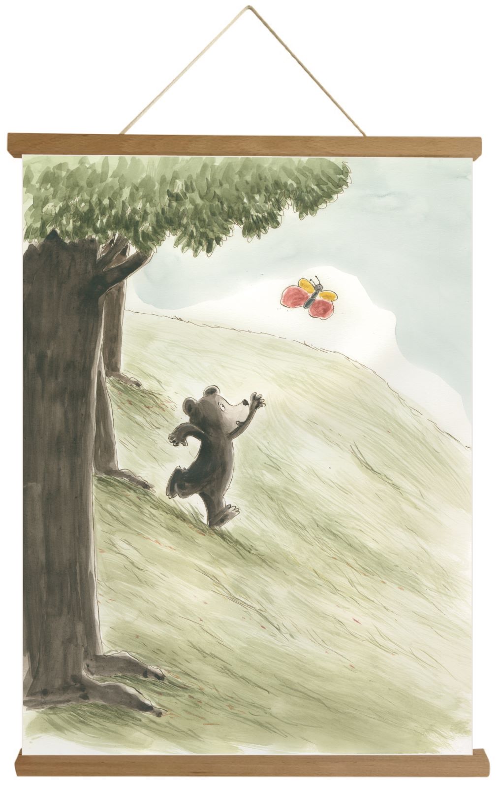 Sehr schönes Poster mit Bärenmotiv aus Papier mit Holz-Stäben magnetisch. 42 x 60 cm, VE 1 Stk.