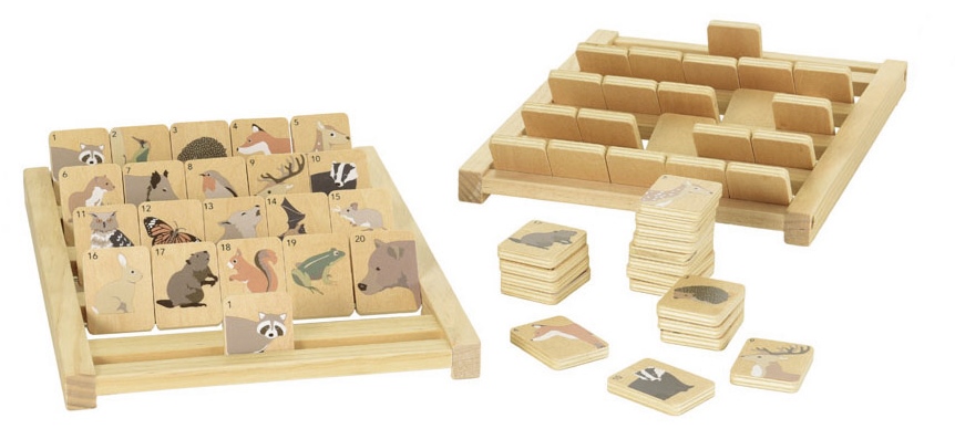 2 Spieler nehmen ein Tier und versuchen, das Tier des anderen Spielers zu erraten, indem sie Fragen stellen. Gefertigt aus FSC zertifiziertem Holz. 28 x 21 x 4 cm, 3+, VE 1 Stk.