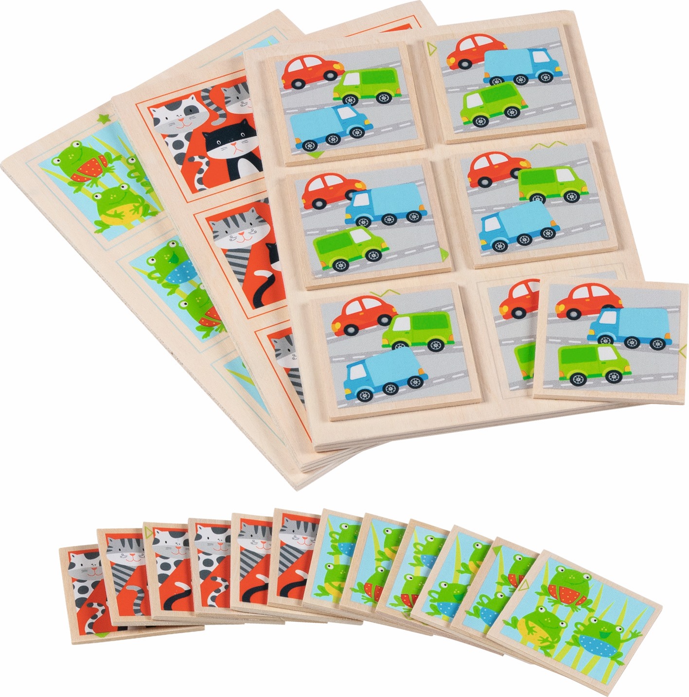 Es ist nicht alles gleich, was gleich aussieht. Dies macht den Reiz des Memories aus 36 Holzplättchen aus und erhöht den spielerischen Reiz beträchtlich. Die Motive auf den Holzplättchen unterscheiden sich manchmal nur wenig. Also Schau Genau! 6 Motive, beidseitig bedruck, 22 Teile aus Holz. 17,5 x 12 cm, 4+, VE 2 Stk.