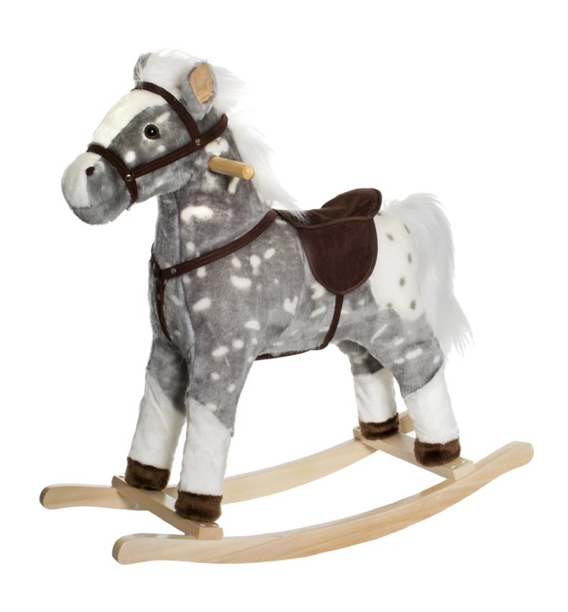 Das Schaukelpferd ist ein weich und hochwertig, mit ihm kann man in ein Abenteuer galoppieren. Das Pferd macht grunzende und galoppierende Geräusche, wenn die rechten und linken Ohren gedrückt werden. An beiden Seiten des Kopfes sind schlaue Griffe angebracht, an denen sich die Kinder leicht festhalten können. Das Schaukeltier ist außerdem mit kippsicheren Rädern ausgestattet. Maximales Gewicht: 50 kg. Benötigt 2 x AA-Batterien (nicht enthalten). 3+, VE 1 Stk.