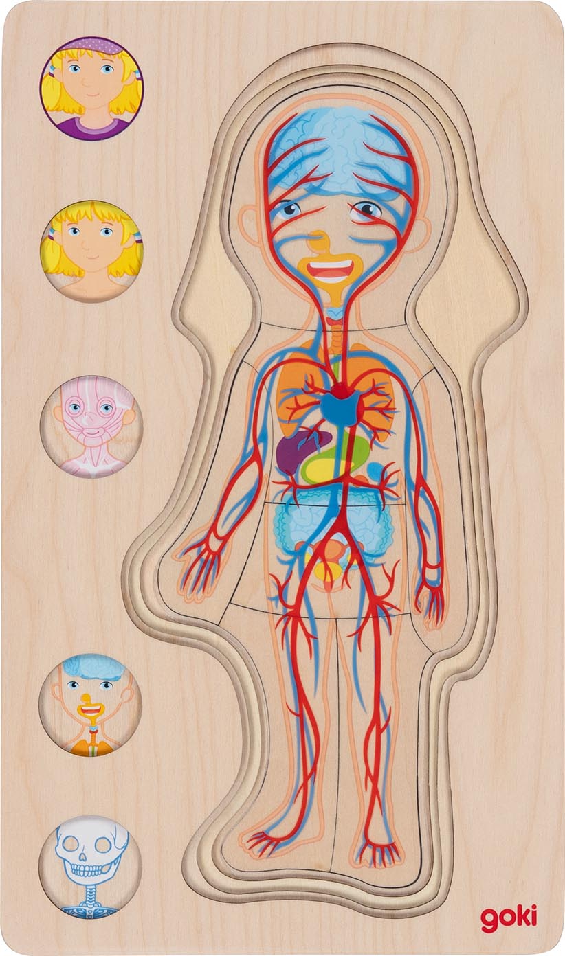 Interessantes, lehrreiches, 5-teiliges Schichtenpuzzle aus Holz, 29 Teile. 17,7 x 29,8 x 1,4 cm, 4+, VE 2 Stk.