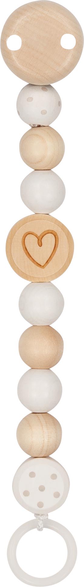 Schnullerketten werden einfach an der Babykleidung angeclippt, so geht der Schnuller nicht verloren. Und Babys gute Laune auch nicht. Länge 21 cm, Holz, VE 3 Stk.
