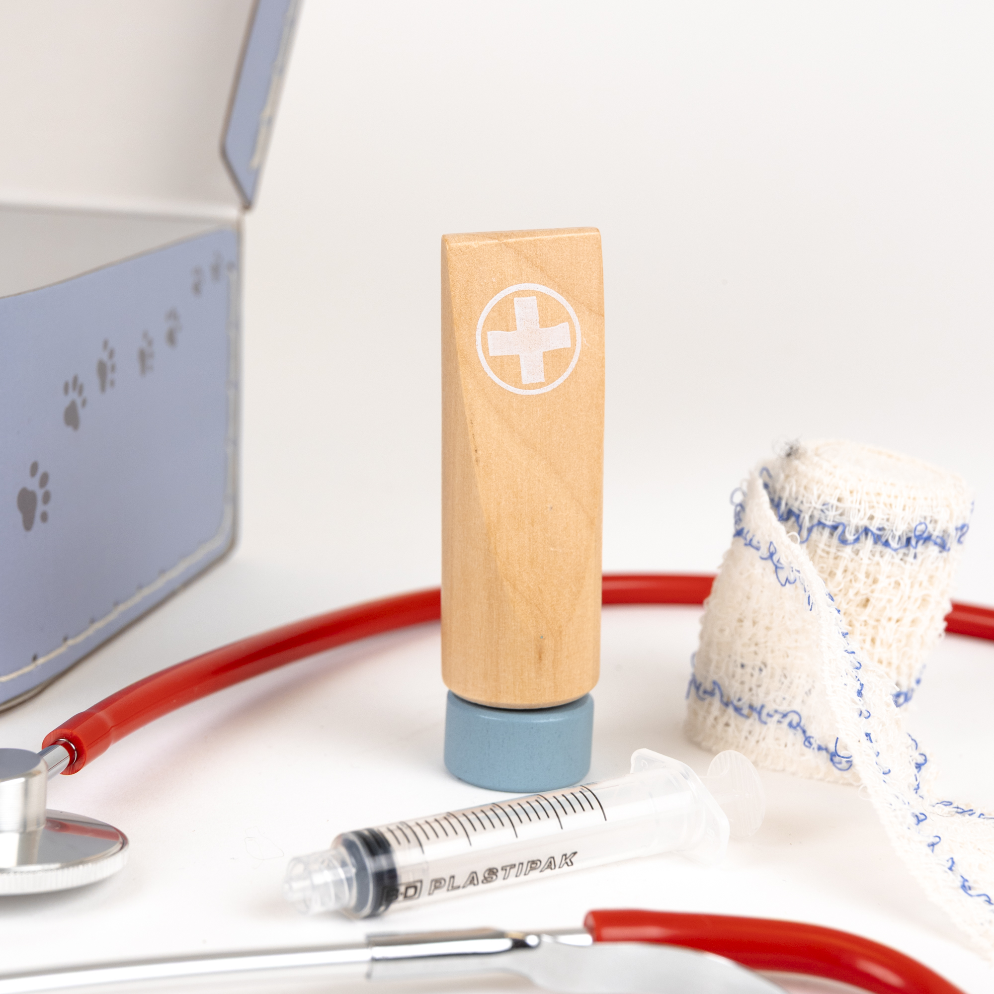 Kinder lieben Nachahmungsspiele. In diesem Tierarztkoffer finden sie Walter den Hund und alles, was ihm und seinen Freunden hilft: Thermometer, Spritze, Verband, Schutzkragen, ein echtes Stethoskop und einen Papierkorb. Ein Notfall? Einfach mitzunehmen, wohin auch immer Sie gehen! 29 x 20 x 4 cm, 3+, VE 1 Stk.