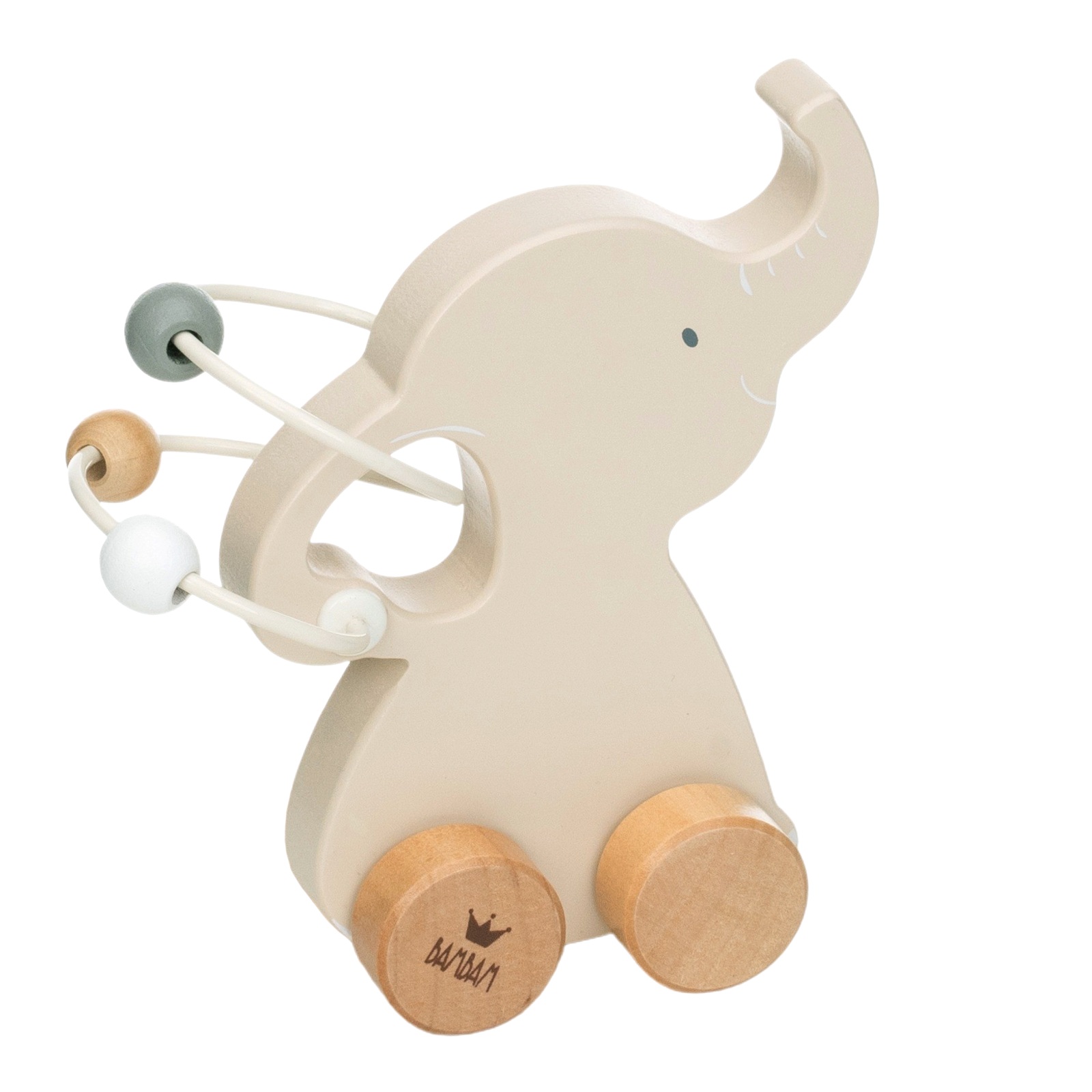 Wie süß er ist, dieser Holzelefant auf Rädern. Man kann mit ihm herumfahren, rasseln und mit den Perlen spielen (gut für die Feinmotorik). 16 x 8 x 13 cm, VE 2 Stk.